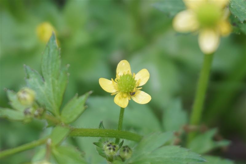イチゴと似た葉や果実を持つが、異なる属に分類され、白色あるいは薄ピンク色の花を付けるイチゴとは異なり、黄色の花を付ける。