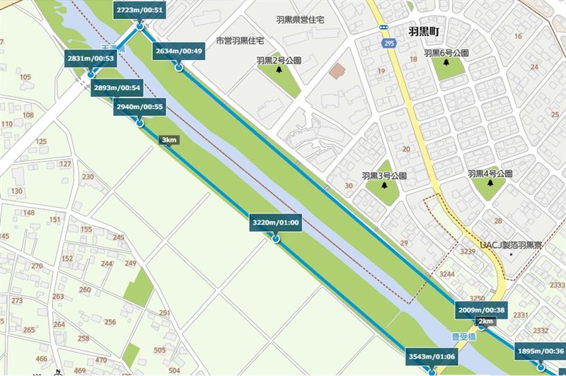 スタートは、「ウォーキングコース 豊東橋から豊受橋」と同じですが、豊受橋を渡らずにそのまま真っすぐ進み天満橋まで行くコースです。因みに、私はウォーキング50分でした。